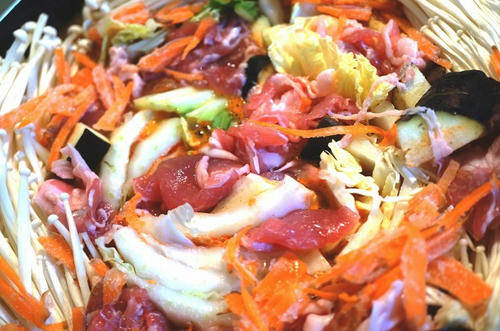 豚肉、白菜、えのき、人参、なすを入れてみました。