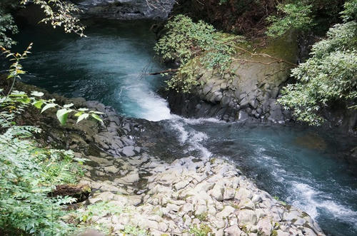 手前の方は浅いので川底の石や砂がはっきり見えます。