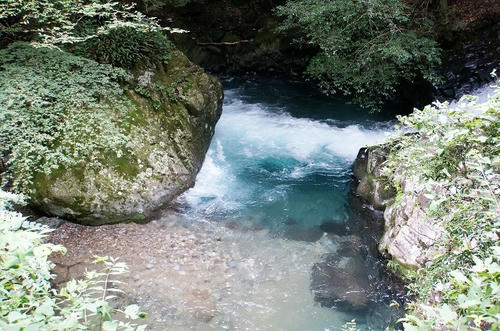 この先に落差30mの「大滝」があるのですが、遊歩道からは見えずどこかの露天風呂から見えるとか情報はあったのですが、そこまでして見るのもなぁ・・・ってことでここで引き上げました。