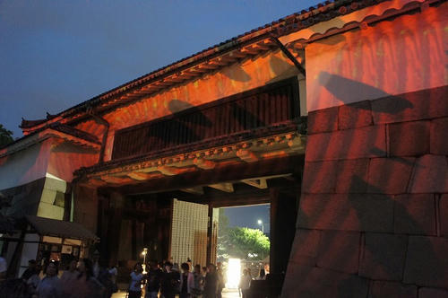 東大手門を入って振り返ってみると、なにやらデジタルの光アートが!!