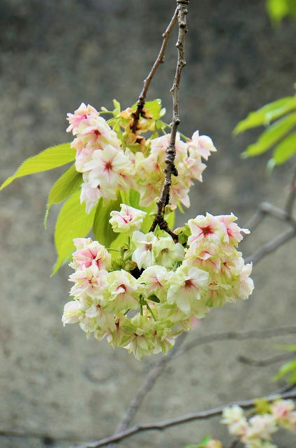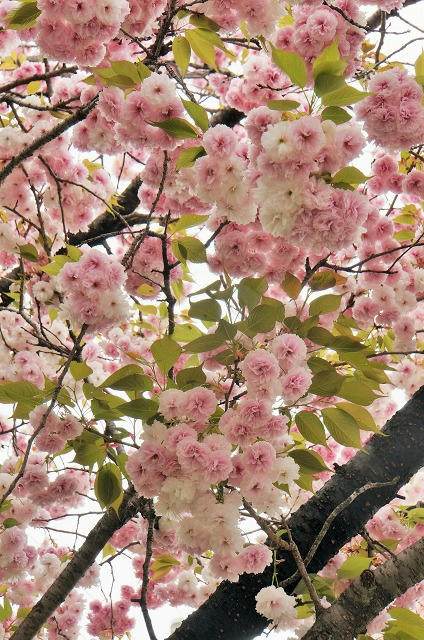 八重桜は葉っぱも綺麗な色で、ブーケがいっぱいあるみたいに見えて好きです。