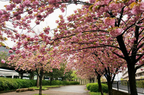 ソメイヨシノみたいに、真っ白…とはいかないですけどピンクいっぱいの桜道は見ていて癒されますね。