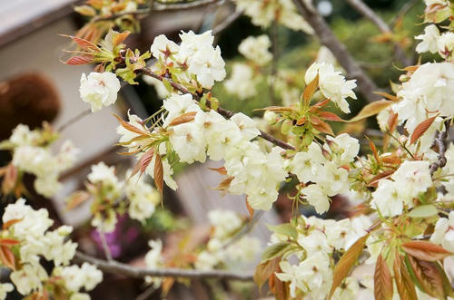 境内で見つけて嬉しかったのは、この黄色がかった桜。