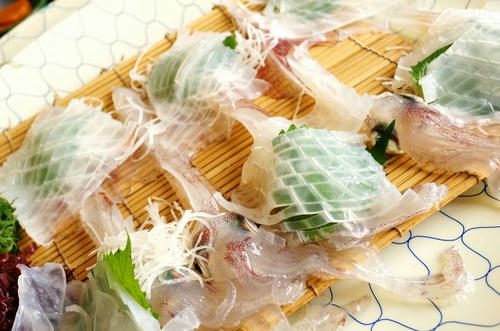 新鮮なイカのお刺身は白じゃなくて、少し透き通ってます。