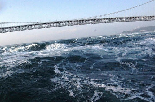 大鳴門橋をくぐってまた港に戻ってくるのですが、潮の流れが早いところで