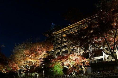 ライトアップってあんまり紅葉がよく見えなんじゃないだろうか?とか思ってたんですが、清水寺のはとても明るくて撮りがいがあります。