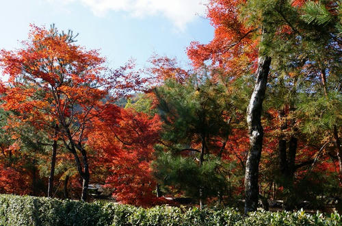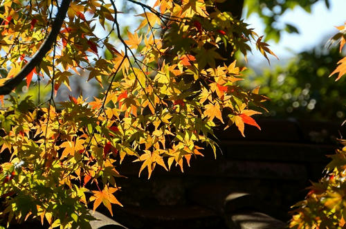 ここには天龍寺の塔頭(たっちゅう)である小院が並んでいるのですが、そこのお庭にあるモミジが外からちらっと見えるんです。