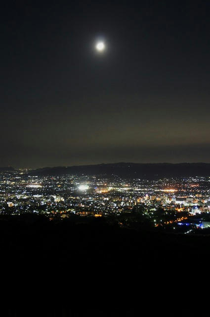 月と一緒に夜景を撮ると、どうしても月の方がぼやっとしてしまいます。