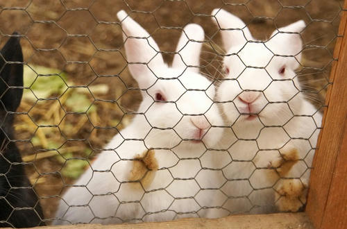お土産や地元のお野菜なんかが売られていたのですが、近くに動物小屋があったので見に行ってみると、とっても可愛いウサギさん発見!!
