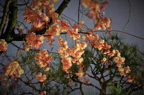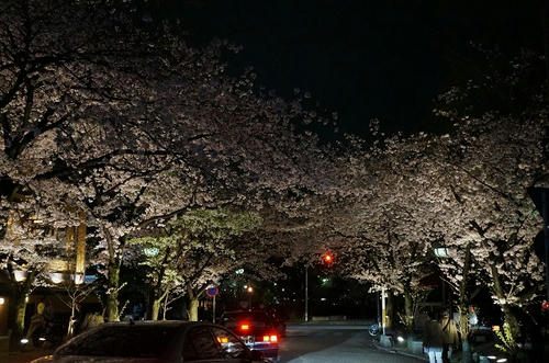曇天に桜は似合いませんが、夜桜なら曇ってても問題なし。