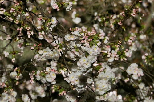 毬状に咲く桜は風が吹くたびにぐるんぐるん揺れるので撮るのが大変…。