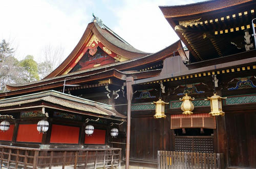 国宝の社殿はほんのり赤みがかっていて豪華です。