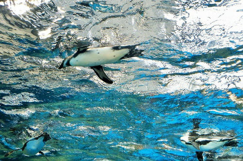 上を見上げれば、空を飛んでるみたいにペンギンのおなかを見ることができます。