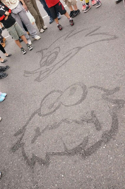 歩いていると、水で絵を描いている清掃員のパフォーマンスを見ることが出来ました!