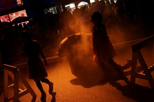 暗いから写真が全然上手く撮れないのですが、ゆらゆら歩くゾンビと生贄になった人…