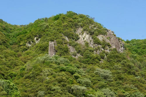 山の新緑の合間からもニョキっと岩肌が見えてます。