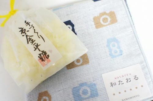 タオル生地と手ぬぐい生地が合わさった、とっても可愛いミニタオル。