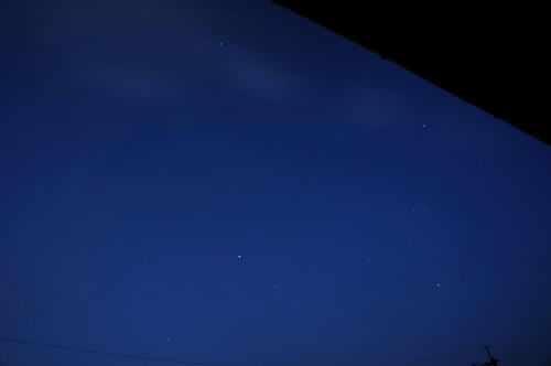 右上に屋根が写って、オリオン座の頭が欠けてますが・・・。