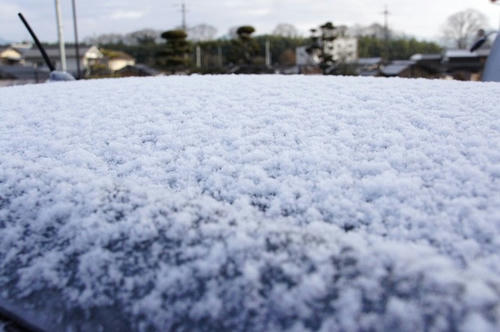 冷え込んだ朝方、泊まり仕事を終え、屋外駐車場へ向かうと愛車が真っ白になってました。