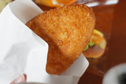 揚げたてなので、生地はサックサクで食が進みます。熱いので気をつけて~