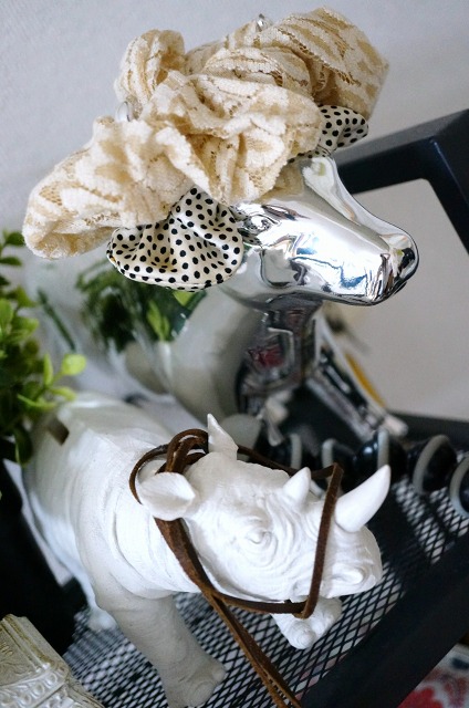 特にウシの頭は良い感じの幅なので、すっぽりシュシュが収まるんですよ。