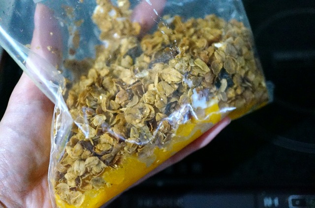 シェイカーは止めて、ジップロックに入れてつぶしながら作ってみることに。
