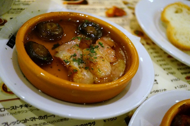 ↑は「厚切りベーコンとマッシュルームのアヒージョ(530円)」です。