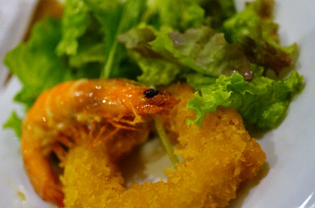 ソフトシェルシュリンプとイカリングのサラダ(780円)。