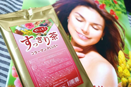 「やっとすっきり茶コラーゲンPLUS」という便秘解消のためのお茶モニターに選ばれましたー。
