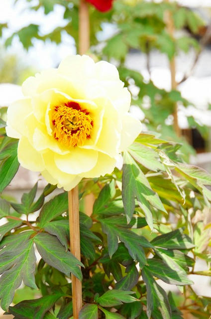 牡丹の後ろに写っている赤いのがそれです。