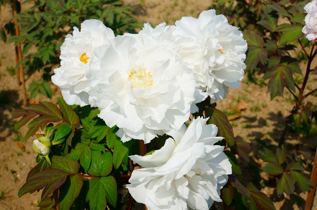 いろんな色の牡丹の花が咲いています。