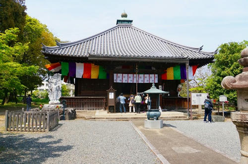 本堂の縁側に腰掛けて境内を眺めてみます。