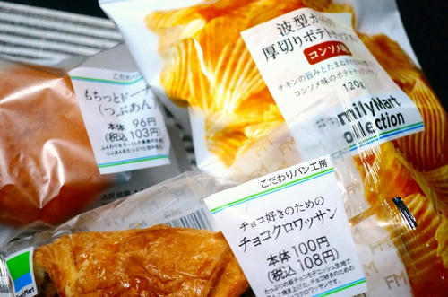 いつものチョコクロワッサンにもちっとドーナツ(つぶあん)と厚切りポテトチップス。