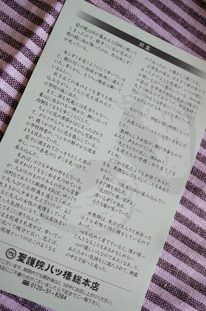 聖護院の生八つ橋は初めて買ったのですが、中に1枚の紙が入っていました。
