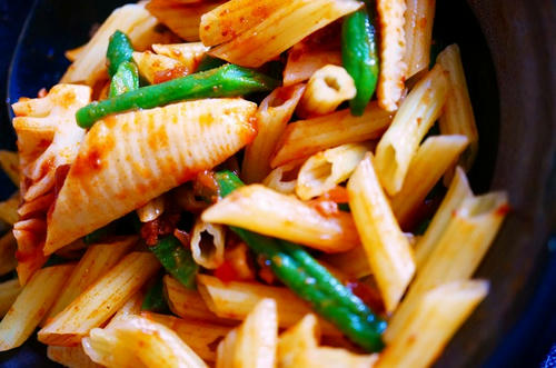 春らしいタケノコを入れてみましたが、インゲンのシャキシャキという食感とペンネのもっちり感が合わさってとても美味しかったですよ。