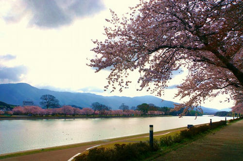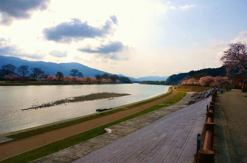 向こう岸の桜も満開のようですね。