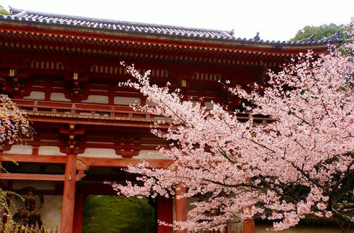 かろうじて仁王門の手前の桜は満開でした。