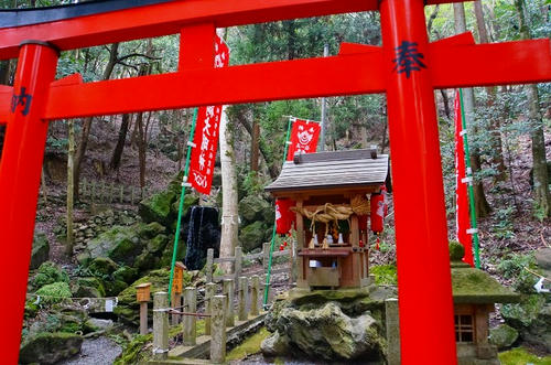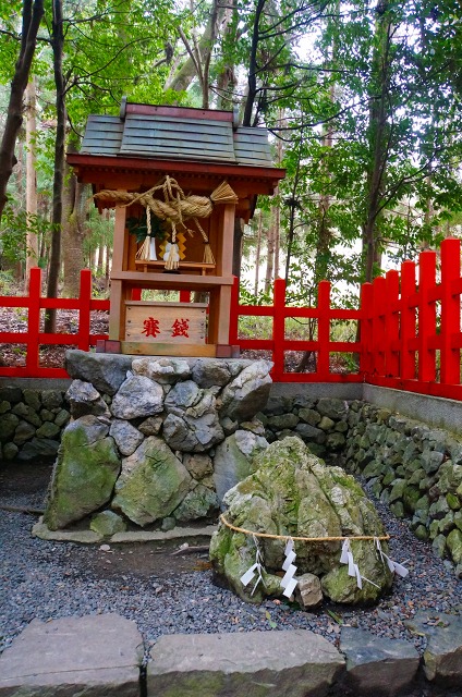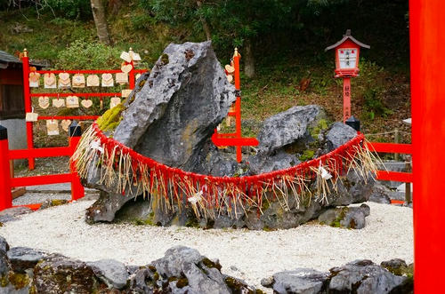 右側には御神体山である御蔭山(みかげやま)があり、参道をあがるとパワースポットである「磐座(いわくら)」にたどり着きます。