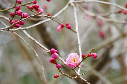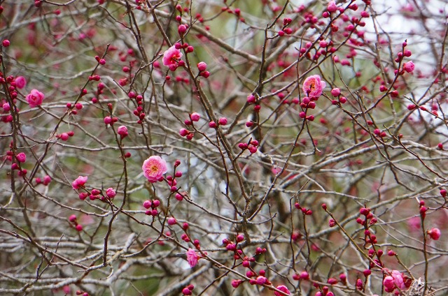 ぐるっと回って境内に帰ってくると、梅の花がお出迎え。
