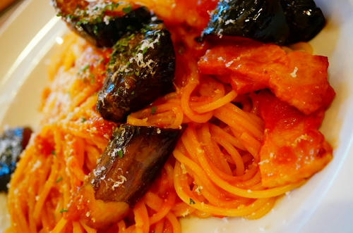 茄子とベーコンのパスタ。ベーコンが肉厚で美味しかった☆