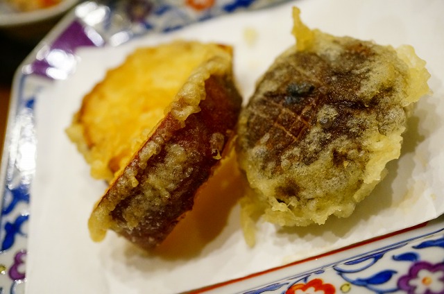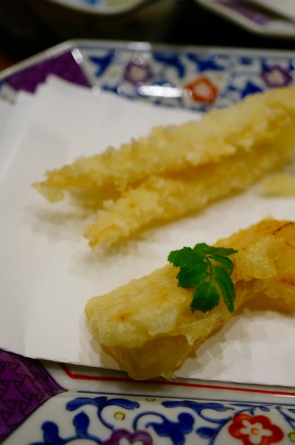 奥のは白魚なんですが、あられをまぶして揚げてあったんですよ。