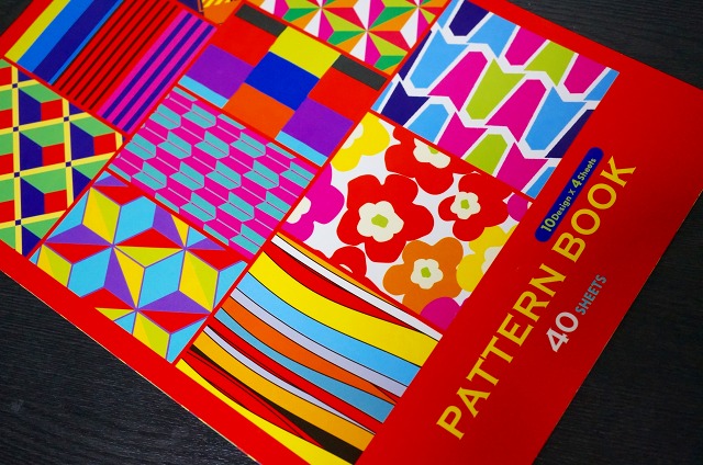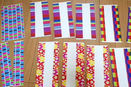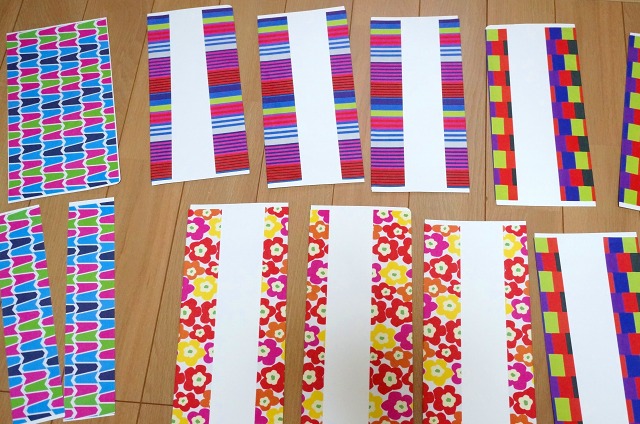 引き出し前面の大きさに合わせて切った厚紙に、パターンブックの用紙を貼りつけていきます。