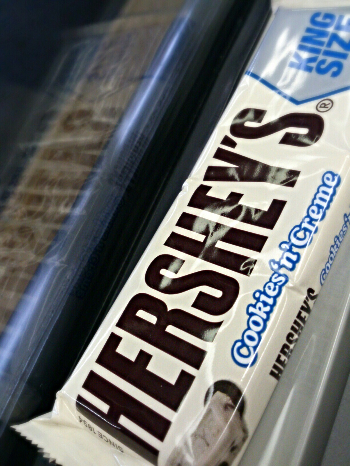 あと、こないだ懸賞で当たったハーシーのどでかいチョコがまた食べたくなったので、クッキーアンドクリーム味を買いましたよ。