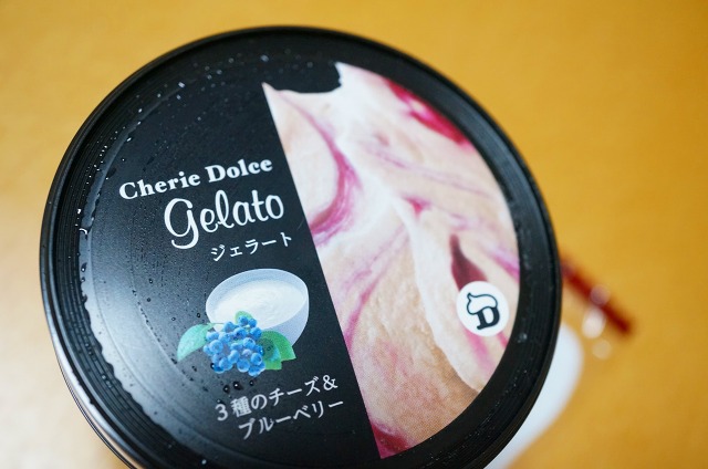 シェリエドルチェジェラートにはいろんな種類があって、どれにしようかずっと悩んだのですが、レアチーズを凍らせて食べる女の私は「3種のチーズ&ブルーベリー」を選びました。