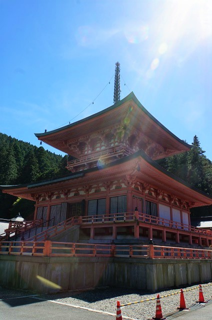 比叡山山頂から山道をテクテク下ってくると、延暦寺の東塔エリアにやってきましたよ。