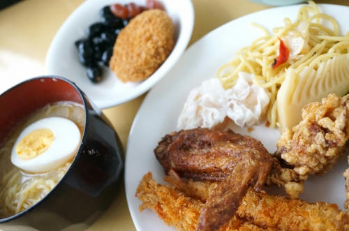 いろんなメニューがあって目移りしちゃうのですが、揚げ物中心に取ってたらあっという間におなかいっぱいに。