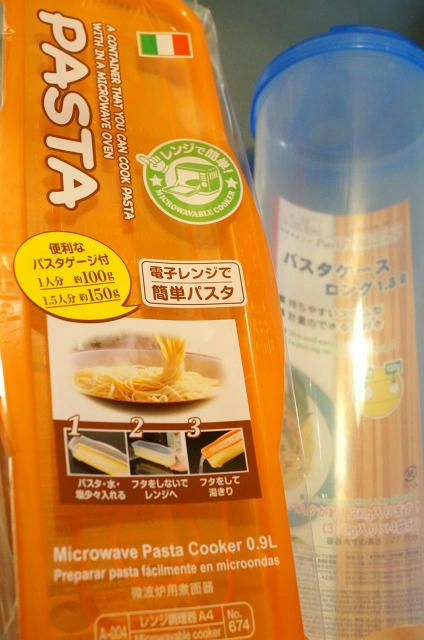 100均で買ってきた電子レンジでパスタ麺をゆでられるケースを使います。