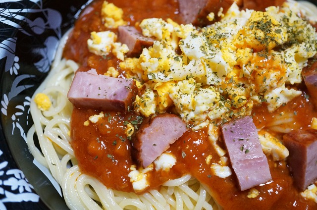 今回作るのは「たまごのっけミートソースパスタ」(2人前:パスタ150g使用)