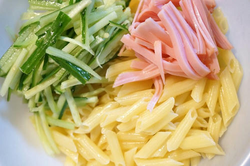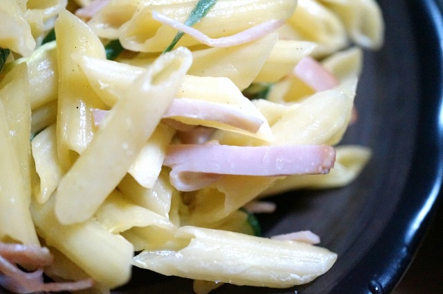 ってことでペンネと同じ長さに切り揃えます。ハムは1パック使いました。
