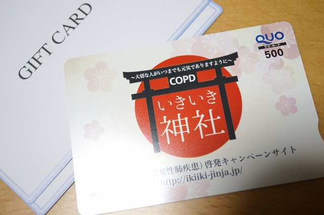 これはCOPD啓発のキャンペーンで当たったクオカード。